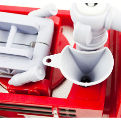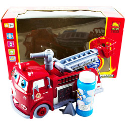 Hasičské auto s s bublifukom. Perfektná hračka pre chlapcov a dievčatá. Vozidlo je napájané 3 AA batériami (nie sú súčasťou balenia). Návod na použitie:Pred zapnutím hračky stačí naliať do vnútra priloženej fľaštičky trochu tekutiny, ktorá vytvára bublinky. Teraz, keď naštartujem..