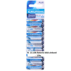 Batérie AAA/12ks-zinkové.UPOZORNENIE: Nekombinujte nové a staré batérie, rôzne typy a značky! Nové batérie vkladajte podľa označenia! Pozor na správnu polaritu! Batérie nenabíjať, neotvárať a nehádzať do ohňa! Použité batérie odhadzujte do určených košov! ..
