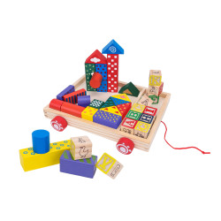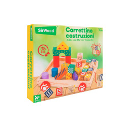 SIRWOOD Drevenný kocky vo vozíku.Drevený ťahací vozík, rozmery 33x28x5,5. Skladá sa z 35 dielikov rôznych tvarov, farieb a veľkostí, aby ste mohli dať priechod svojej fantázii vymyslieť všetky konštrukcie, ktoré si želáte! Rozpoznaj a nauč sa písmená abecedy a napíš svoje meno. Tieto drevené hr..