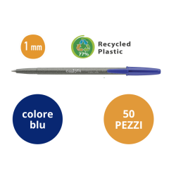 Carioca Sfera Gulôčkové pero ECO je vyrobené z 90% recyklovaného plastu. S perom dokážete napísať s ľahkosťou viac ako 2 km. Stopa písania je 1 mm.Špecifikácia:1 Carioca Sfera Gulôčkové pero ECO modré 50ksstopapísania je 1 mmviac ako 2 km písaniabalenie: 50 kscena za balenievyrobené v Taliansk..