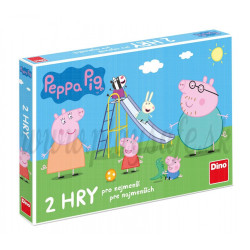 Preháňať sa po rebríkoch aj keď vonku prší, zábavné. S prasiatkom Peppa Pig je to jednoduché. V balení dvoch spoločenských hier nájdete obľúbené obrázkové človeče a k tomu hru Rebríky a šmykľavky. Cieľom rebríkov je dostať sa do cieľa ako prvý, tak ako v prípade človeče je nutné zaparkovať v domčeku..